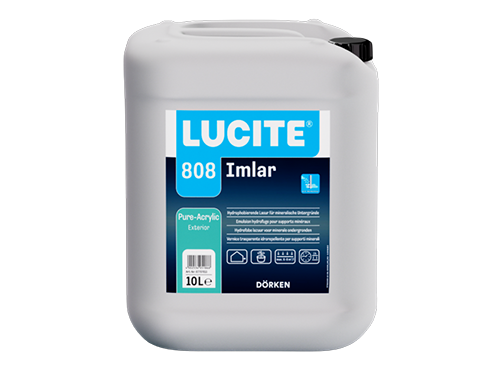 LUCITE 808 IMLAR assegura a protecção contra as agressões químicas (graffiti, chuvas ácidas e difusão de CO2, água, sujidade) e a fixação de fungos, mantendo inalterados o aspecto e a cor da superfície (resistente aos raios ultravioleta). Permite a selagem de fissuras até 0,3mm. LUCITE 808 IMLAR é uma emulsão aquosa: pode ser aplicada sobre suportes húmidos, e é inodoro e não poluente. LUCITE 808 IMLAR pode ser aplicado sobre betão à vista, pedras naturais e artificiais, materiais cerâmicos não vidrados e fibrocimento.
